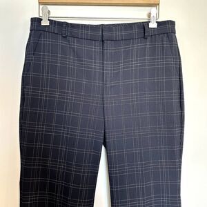Banana Republic Logan Trouser-Fit Wool-Blend Pant Career Size 8S Blue Plaid