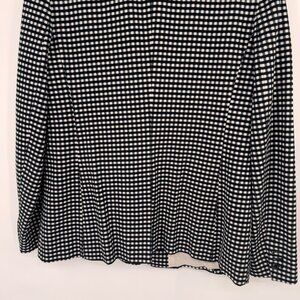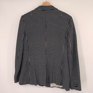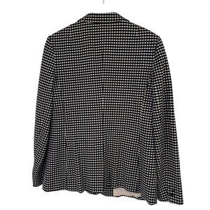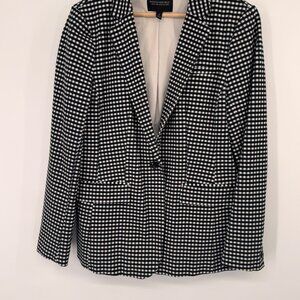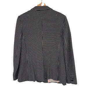 A sophisticated women's blazer from Banana Republic, styled in a classic black and white checkered pattern. This long and lean blazer offers a polished look, suitable for a professional setting or an elegant evening. Size 12 provides a comfortable fit, ensuring both style and functionality.