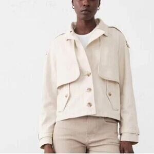 Banana Republic Long Sleeve Collared Short Trench Jacket Ecru Women's Size XS