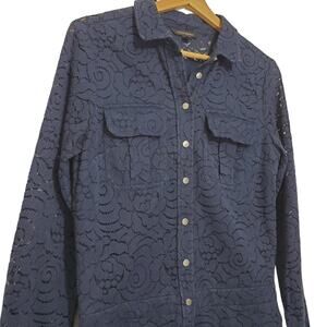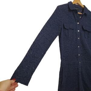 Banana Republic | Long Sleeve Lace Scalloped Hem Button Front Romper Pockets