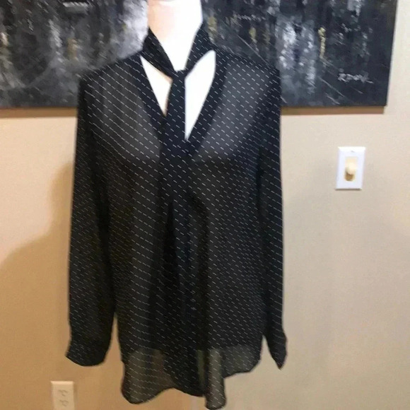 Banana Republic Long Sleeve Polka Dot Sheer Button Front Blouse Neck Tie-Size S
