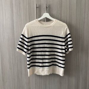 Cream and navy stripe top, 100% cashmere. Size small. No shrinkage.