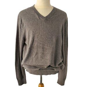 Banana Republic Luxe Sweater Gray V Neck Pullover Lightweight Tight Knit Mens Lg