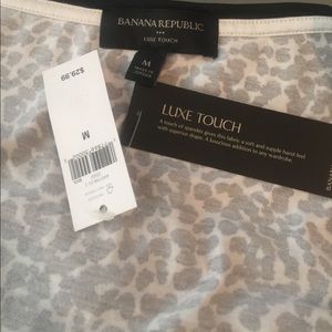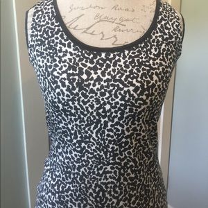 Banana Republic Luxe Touch sleeveless top with black and white Animal print all over shirt and a dressy black fabric around neckline. Super cute!! 😀NWT