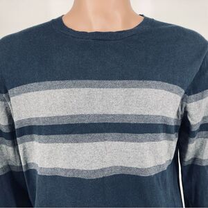 Banana Republic Luxury Blend:75% Silk 20% Cotton 5% Cashmere Crew Neck Striped(Blue,Grey) Men’s Sweater Size L Approximately Measurement:Pit 23”/Length Raglan Sleeve from Pit 20,5”/Length 28,5” Pre-owned Great Condition