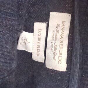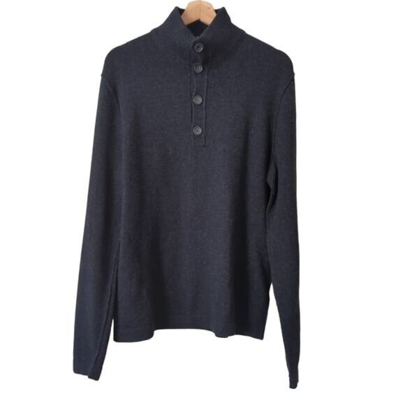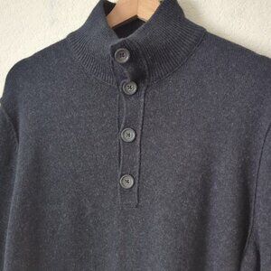 Banana Republic luxury blend size large men's sweater pullover cotton Angora rabbit hair and Cashmere blend style 525901-00 charcoal gray black long sleeve popover Henley knit length 27 flat across underarm 21.5 in. Excellent Pre-Owned condition!!