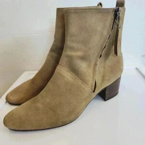 Great pair of suede Banana Republic Lydia Bootie in Vintage Olive color. These boots are used, but in very good condition. There is one black mark on the inside of the right boot, as shown in pictures. size 10