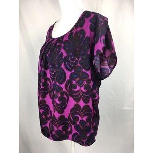 Banana Republic M Medium Women’s Purple Pink Blouse Slit Sleeve Round Neck Top