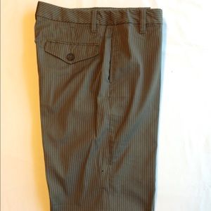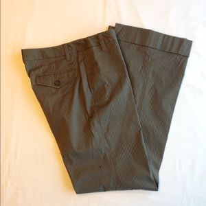 Stretch cotton Martin fit pant size 4. Army green / brown color with cream stripes. Cute button pockets on the back, normal hip pockets, button closure. Leg has a slight boot cut feel with cuff. Lightweight cotton perfect for summer.