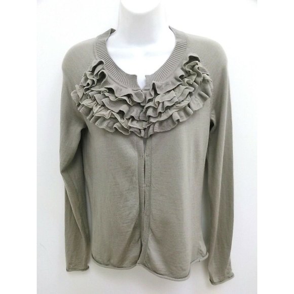 Banana Republic Womens Medium Cardigan Sweater Taupe Long Sleeve Ruffled