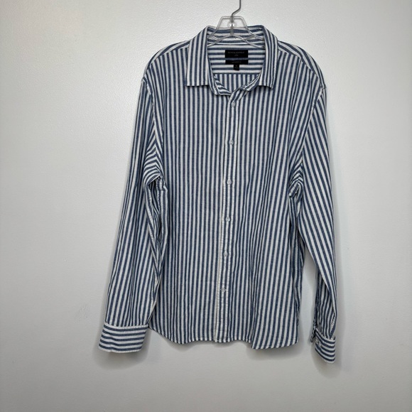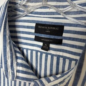 Banana Republic Men XL Linen Button-Up Shirt Blue White Stripe Untucked Slim Fit