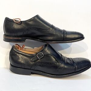Banana Republic Mens 10.5 Black Leather Cap Toe Strap Oxford Business Dress Shoe