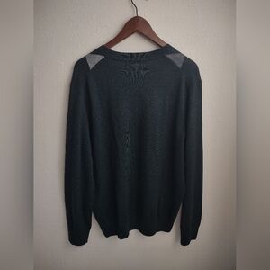 Banana Republic Mens Argyle Extra Fine Merino Wool V-Neck Forrest Green Sweater- Large