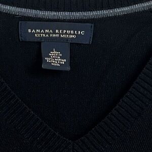 Banana Republic Men’s Black V Neck Sweater Merino Wool Knit Pullover Large