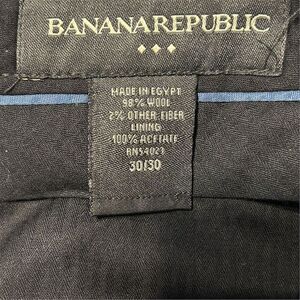 Keywords: Banana Republic, men's dress pants, wool pants, formal wear, black pants, size 30, flat front, straight leg, lined pants, button closure, mid-rise, dry clean only, pre-owned, excellent condition.