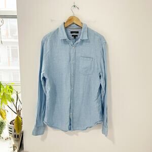 Banana Republic Men's Blue Button Up Camden Fit Linen Top Size Large