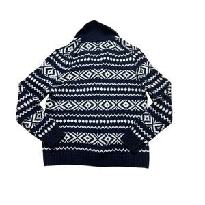 Banana Republic Men’s Blue Chunky Knot Fair Isle Cardigan XL Wool Shawl Collar