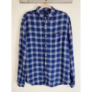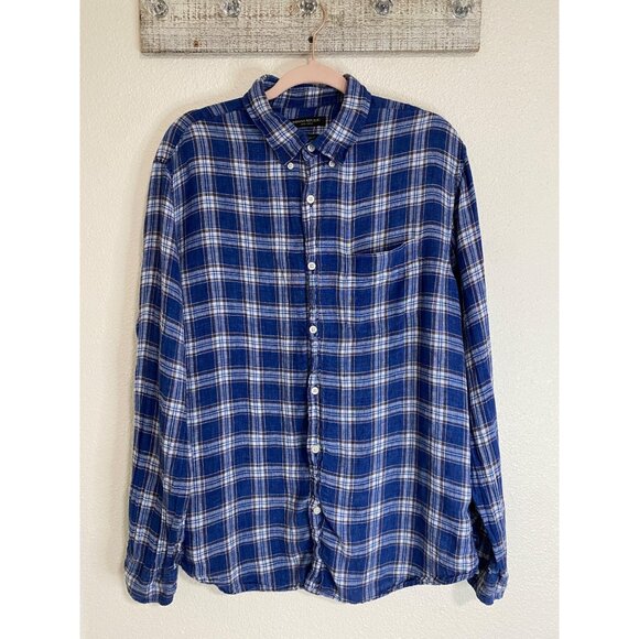 Banana Republic Mens Blue Plaid Shirt 100% linen Size Large