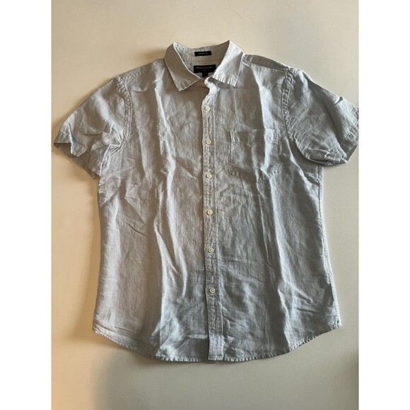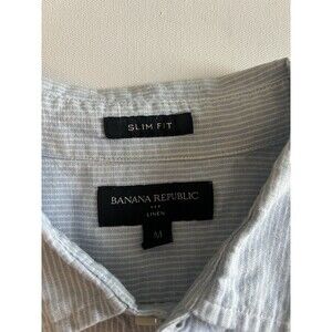 Banana Republic Men's Blue Stripe Linen Slim Fit Short Sleeve Shirt Size M