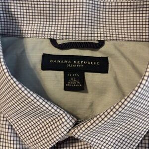 Stylish Banana Republic slim fit, long sleeve button down,blue/gray checkered shirt. Comfortable and versatile. Size 17-17.5 neck. XL. EUC.