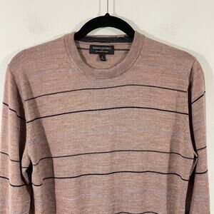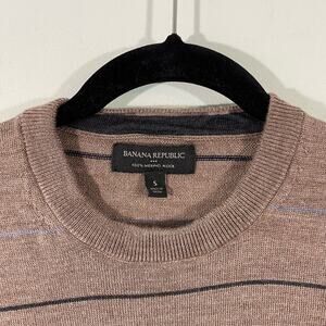 Banana Republic Men's Brown Striped 100% Merino Wool Crew Neck Sweater Size S