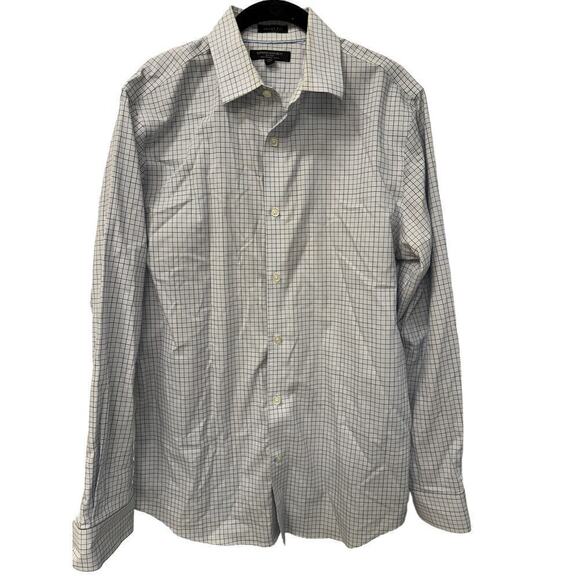 Banana Republic Men's Button Down Grant Shirt Medium White and Blue Windowpane