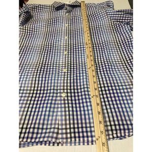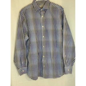 Banana Republic Mens Button Down Long Sleeve Shirt 17.5 Slim Fit Blue Plaid