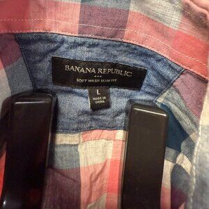 Banana Republic Men's Button Down Navy/Pink Plaid Slim Fit - Size L