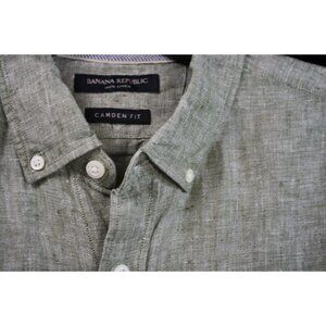 Banana Republic Men's Camden Fit Button-Down Shirt L 100% Linen Light Green