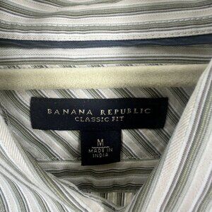 Banana Republic Mens Classic Fit Striped Button-Down Shirt Size M Cotton Green