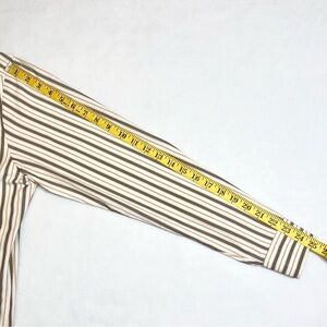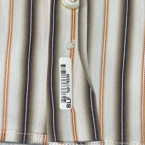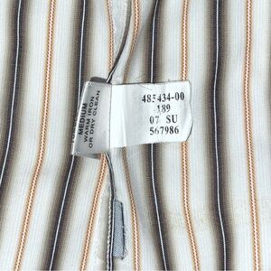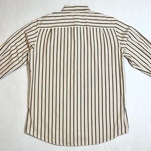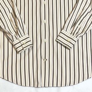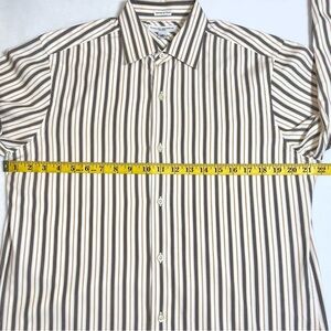 Banana Republic Men’s Fitted Dress Shirt Size M 15-15.5 Woven in Italy 100% Cotton Beige Brown Stripe. Preowned in excellent condition (no stains or pulls).