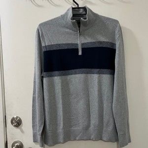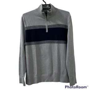 Banana Republic Mens Gray Blue Colorblock Cotton Cashmere Mock Neck Sweater Sz L