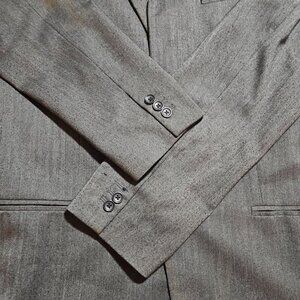 This Banana Republic blazer features a refined gray herringbone pattern, offering a polished look for professional settings. Its tailored fit ensures a sharp silhouette.
