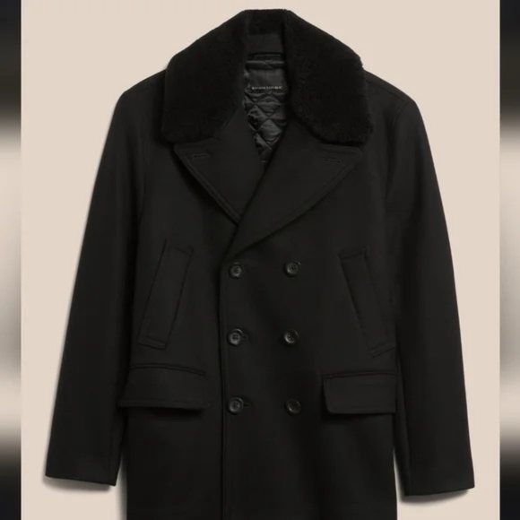 *Banana Republic Men’s Italian Melton Peacoat with Shearling Collar