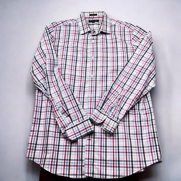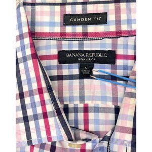 Banana Republic Mens L Camden Fit Plaid Shirt western preppy Red/Blue/White