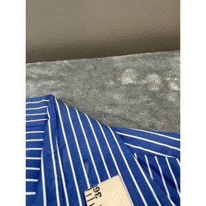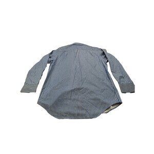 This Banana Republic shirt offers a sophisticated look with its classic blue and white stripes. Ideal for professional settings or casual outings.