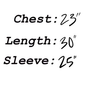 → Measurements (Pit-to-pit chest: 23" | Sleeve length: 25" | Total length: 30") – please note, exact measurements can vary slightly by style