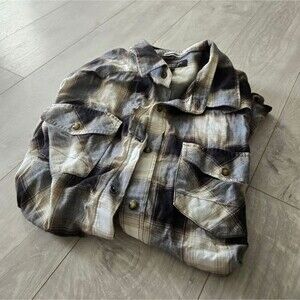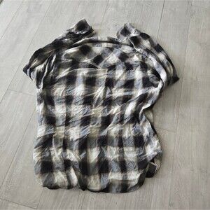Banana Republic Men's Large Shirt Tailored Slim Fit Black Grey Plaid Button Up