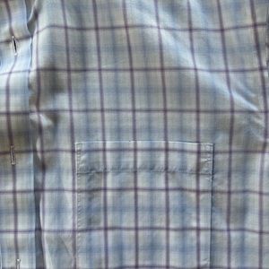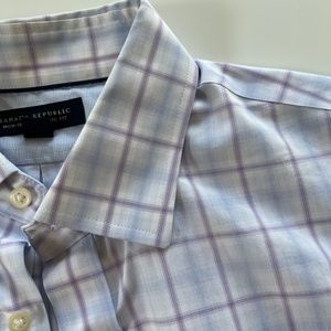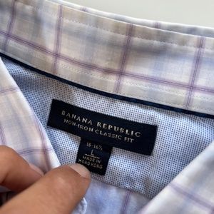 Banana Republic Men's Long Sleeve Button Down Dress Shirt - Size L 16 - 16.5 - Non-iron slim fit. Check pattern with hues of purple and purple-blue