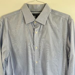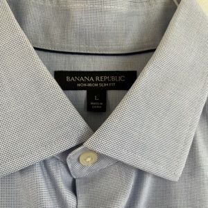Banana Republic Men's Long Sleeve Button Down Dress Shirt - Size L 16 - 16.5 - Non-iron Slim Fit - Light Blue with subtle dot pattern
