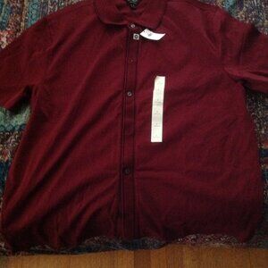 Up for sale is a brand new with tags men's Banana Republic Luxe Touch front button-down short sleeve burgundy polo shirt, USA size large.
