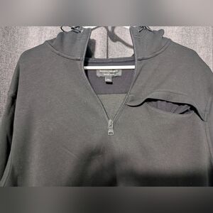 excellent preowned condition Banana Republic Mens Moisture Wicking 1/4 Zip Grey Pullover Hoodie Size Xl. Stay warm and stylish with this classic black half-zip sweater. Perfect for any occasion, this sweater offers comfort and versatility.