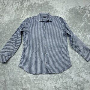 Banana Republic Mens Non-Iron Slim Fit Shirt XL Gray & Blue Striped 6342