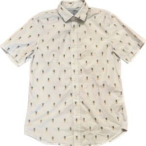 Banana Republic Men's Pineapple Print Linen & Cotton Blend Short Sleeve Button Down - Small