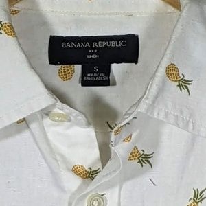 Banana Republic Men's Pineapple Print Linen & Cotton Blend Button Down - Small