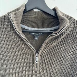 Banana Republic Men's Quarter Zip Waffle Knit Green Sweater Size Large