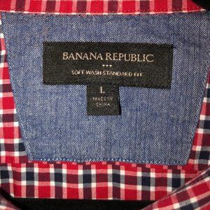 Banana Republic Mens Red Blue White Plaid LS Shirt