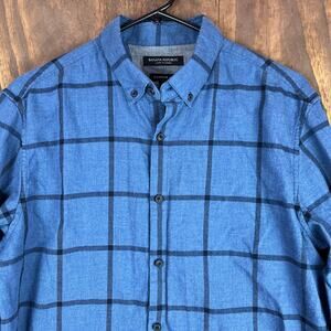 Banana Republic Mens Shirt Blue Windowpane Luxe Flannel Button Down Camden Fit M
