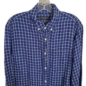 Banana Republic Mens Size L Shirt 100% Linen Camden Standard Fit Windowpane Blue