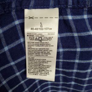 Banana Republic Men's Size L Shirt 100% Linen Camden Standard Fit Windowpane Blue